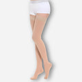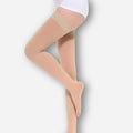 Medicinskt klassificerade kompressionsstrumpor i klass 3 med halkskyddande silikongrepp på låret. Utvecklade för att lindra svår bensvullnad, åderbråck och trötthet, för både kvinnor och män.